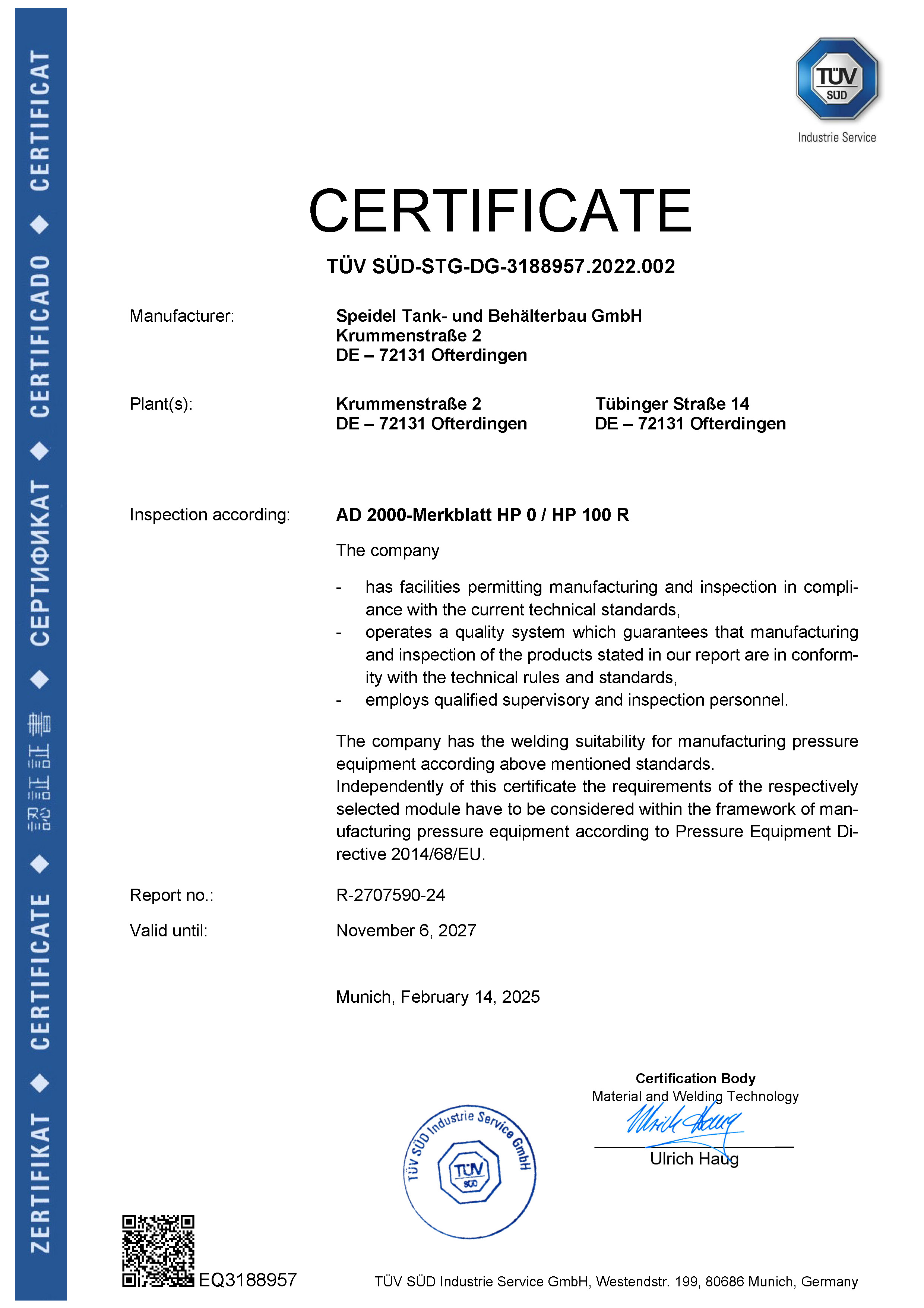 We are certified according to the guidelines for pressure equipment 2014/68/EU: